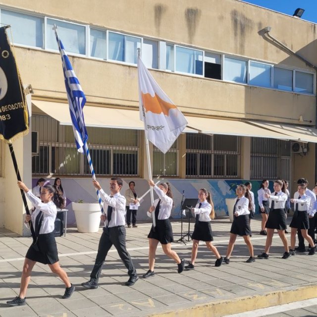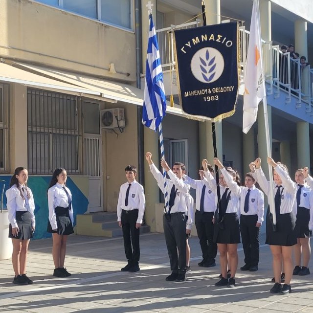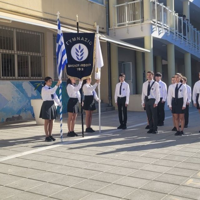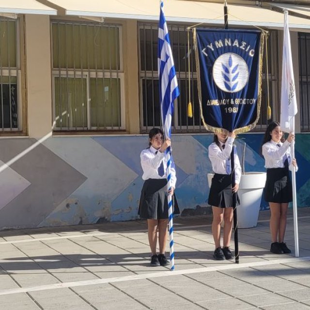 Την Παρασκευή, 25 Οκτωβρίου 2024 το Γυμνάσιο Διανέλλου και Θεοδότου τίμησε την Εορτή της Σημαίας. Σε συγκέντρωση στον προαύλιο χώρο, μετά από την προσευχή, ανακηρύχθηκαν επισήμως η Λαβαροφόρος, οι Σημαιοφόροι και οι Παραστάτες του Γυμνασίου μας.