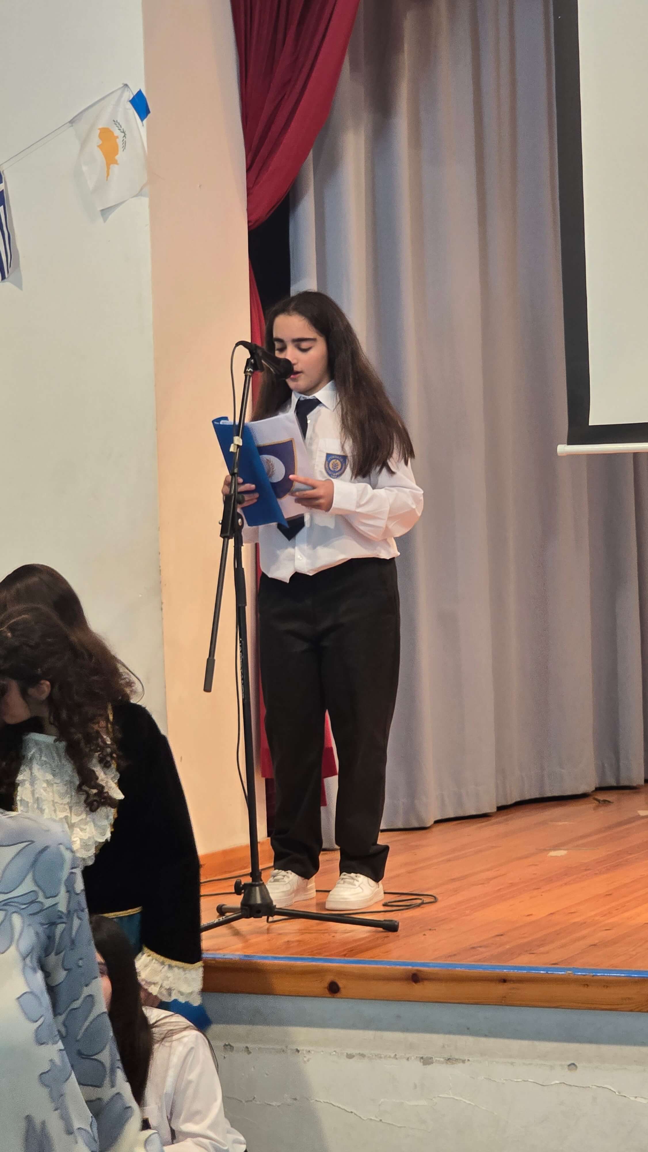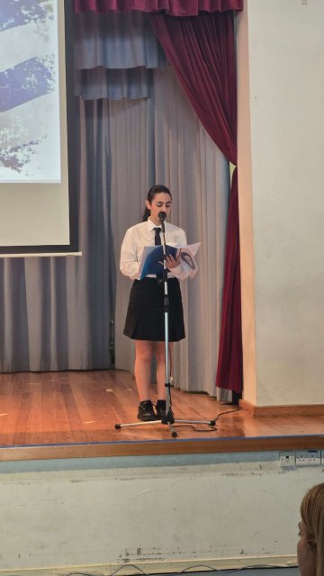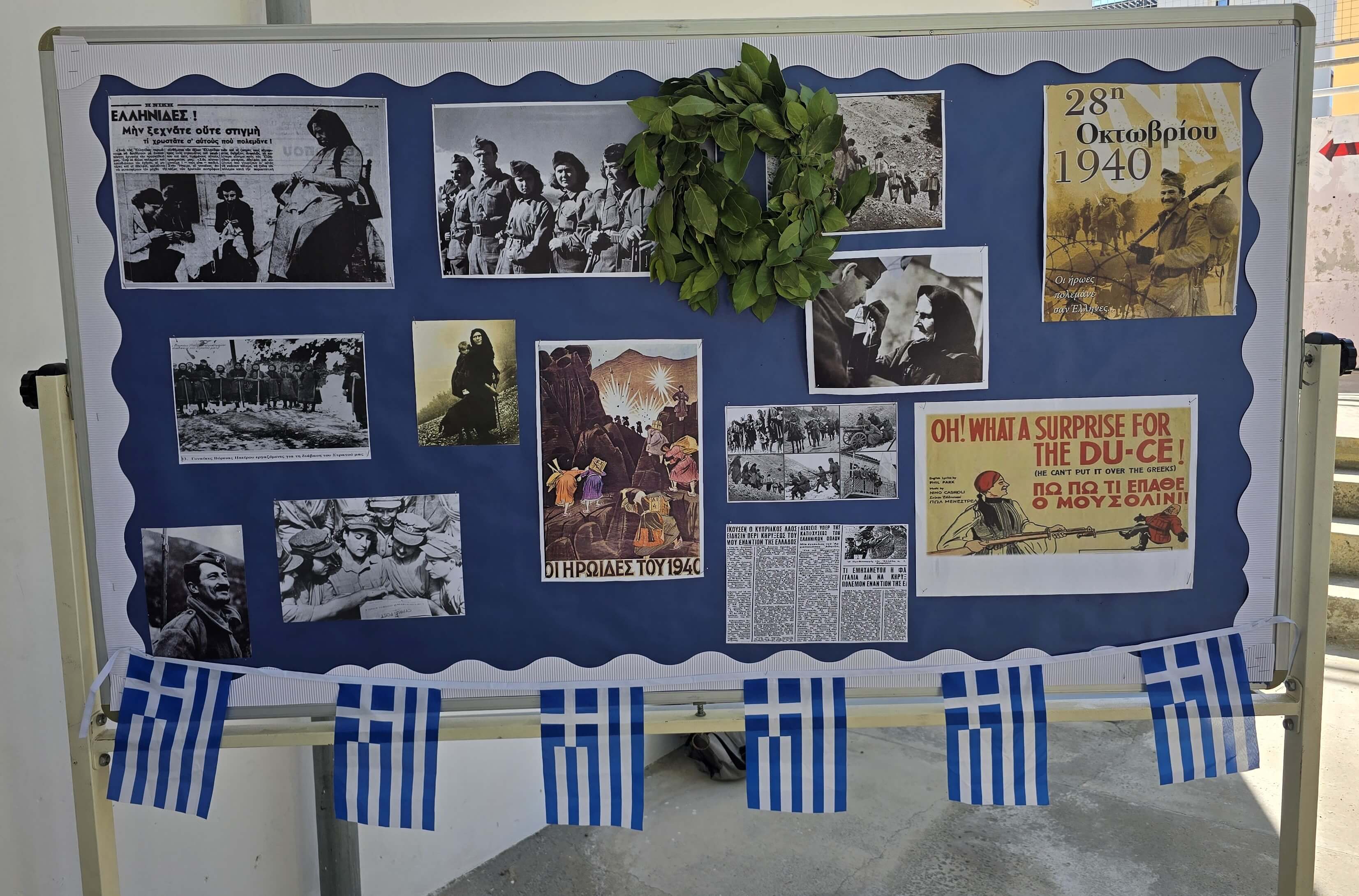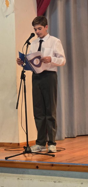 Τη Δευτέρα, 27 Οκτωβρίου 2025, πραγματοποιήθηκε με επισημότητα η Εορτή της Σημαίας, κατά την οποία ανακηρύχθηκαν οι Σημαιοφόροι και οι Παραστάτες του Γυμνασίου Διανέλλου και Θεοδότου. Ακολούθως, τιμήσαμε την Εθνική Επέτειο της 28ης Οκτωβρίου 1940, όταν η Ελλάδα όρθωσε το αγέρωχο «Όχι» απέναντι στην Ιταλία και εισήλθε στον Β΄Παγκόσμιο Πόλεμο πανηγυρίζοντας ωσάν να είχε ήδη νικήσει. Η ένδοξη αυτή επέτειος μας θυμίζει τον ηρωισμό που χρειάζεται η υπεράσπιση της εθνικής μας αξιοπρέπειας σε κάθε ιστορική περίσταση. Οι μαθητές και οι μαθήτριες ανέλαβαν την παρουσίαση ενός Ιστορικού Χρονικού με ντοκουμέντα, ποίηση, μουσική, χορό και θέατρο για τον πόλεμο του ΄40, την κατοχή στην Ελλάδα και τη συμβολή Κυπρίων στον Β΄ Παγκόσμιο Πόλεμο. Την εκδήλωση διοργάνωσαν οι Φιλόλογοι Αλεξία Αλεξάνδρου και Νίκη Χριστοδούλου.