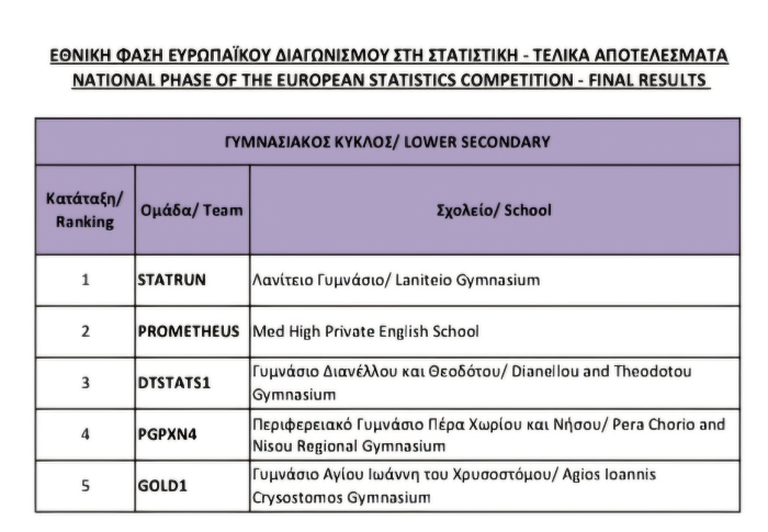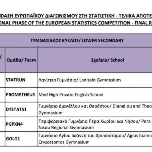 Στις 16 Μαρτίου 2026, η ομάδα DTSTATS1 του σχολείου μας συμμετείχε στην τελική φάση του Ευρωπαϊκού Διαγωνισμού Στατιστικής και κατέκτησε την 3η θέση παγκύπρια .