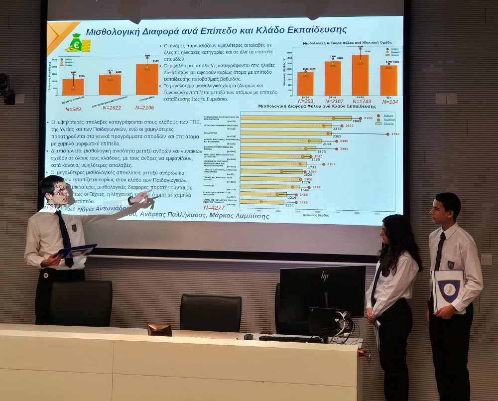 Ο διαγωνισμός αποτέλεσε μια μοναδική ευκαιρία για τους μαθητές να ανακαλύψουν τον κόσμο της Στατιστικής, αξιοποιώντας πραγματικά δεδομένα. Στόχος της έρευνας ήταν η μελέτη της κατανομής των κατηγοριών απασχόλησης στην Κύπρο σε σχέση με το φύλο, την ηλικία, το επίπεδο εκπαίδευσης και τον κλάδο σπουδών. Παράλληλα, διερευνήθηκε η ύπαρξη μισθολογικών διαφορών και μισθολογικού χάσματος μεταξύ ανδρών και γυναικών, καθώς και η εξέλιξη των μισθών ανά κλάδο εκπαίδευσης.