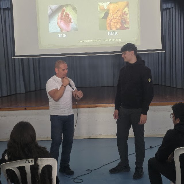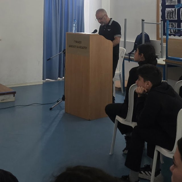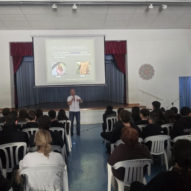 Την Παρασκευή, 11 Απριλίου πραγματοποιήθηκε στο σχολείο μας διάλεξη από τον πυροτεχνουργό της Αστυνομίας, κ. Οδυσσέα Παπαδόπουλο, με θέμα τις κροτίδες και τους κινδύνους που σχετίζονται με τη χρήση τους. Η ενημέρωση ήταν ιδιαίτερα αποτελεσματική ως προς την αποτροπή των παιδιών από την ενασχόληση με κροτίδες ενόψει των εορτών του Πάσχα.