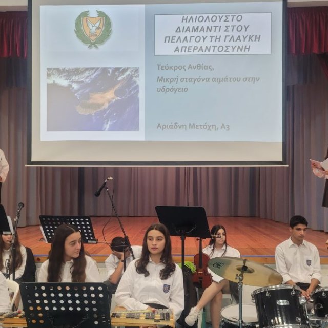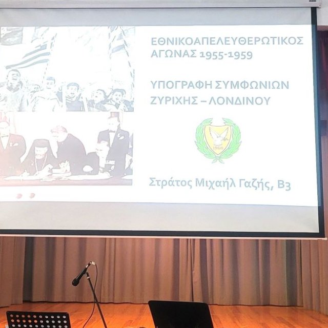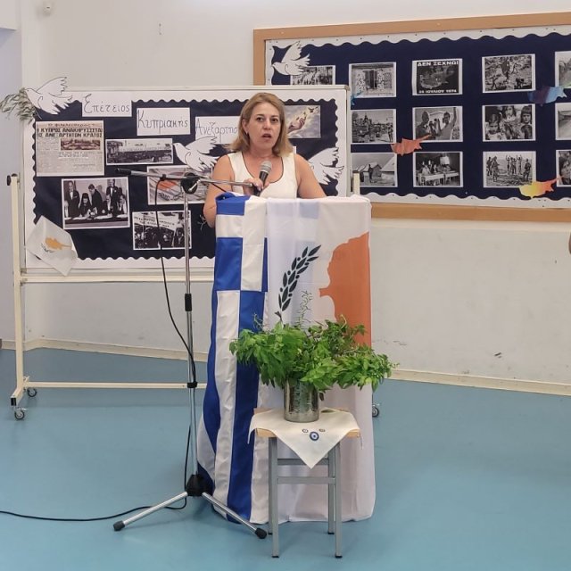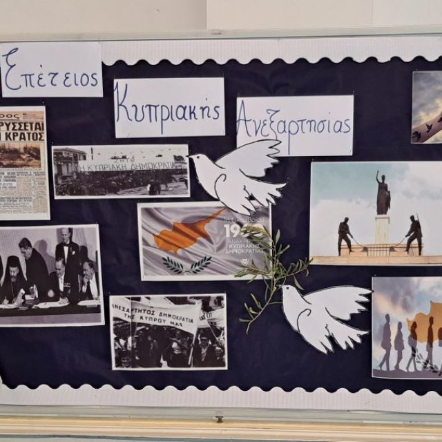 Το Σχολείο μας τίμησε την Επέτειο με εκδήλωση στις 30/9/24, που παρακολούθησαν γονείς, εκπαιδευτικοί και μαθητές/τριες τη Δευτέρα 30 Οκτωβρίου 2024. Στην εκδήλωση παρουσιάστηκε ιστορικό οπτικοακουστικό υλικό, με ιδιαίτερη έμφαση στους σταθμούς της Ιστορίας της Κύπρου. Μαθητές και μαθήτριες απήγγειλαν ποιήματα σημαντικών ποιητών για την Κύπρο και ανέγνωσαν κείμενα, η χορωδία και η ορχήστρα του Σχολείου μας διάνθισαν την εκδήλωση με τραγούδι και η εκδήλωση έκλεισε με την ανάκρουση του Εθνικού Ύμνου.