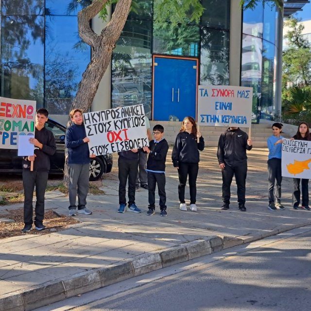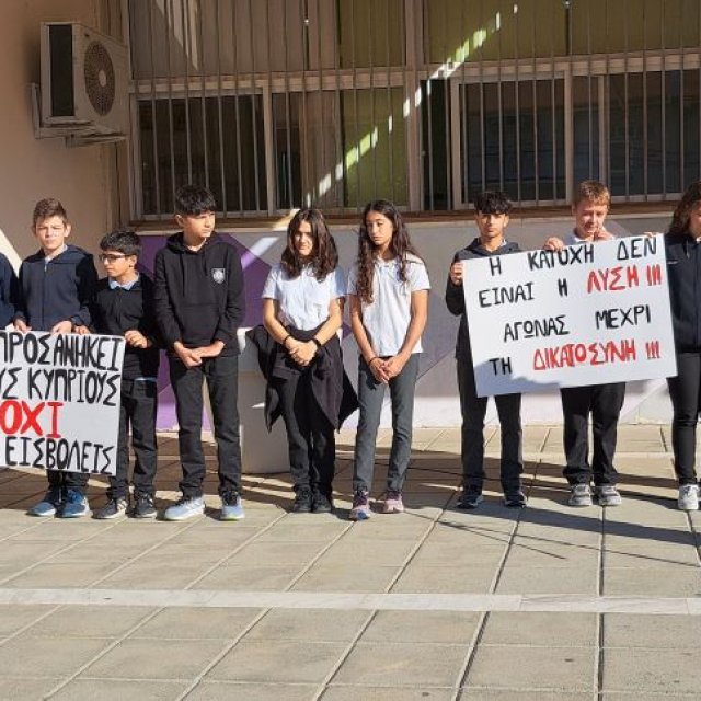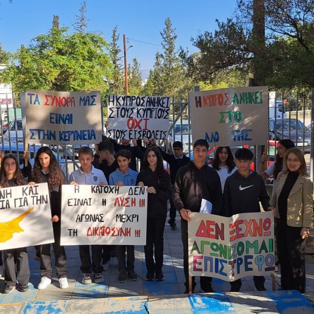 ψευδοκράτους, που ανέγνωσε ο παιδοβουλευτής Πέτρος Φιλιππίδης. Οι πρόεδροι των τμημάτων προέβησαν σε διαμαρτυρία έξω από το σχολείο κρατώντας συνθήματα.