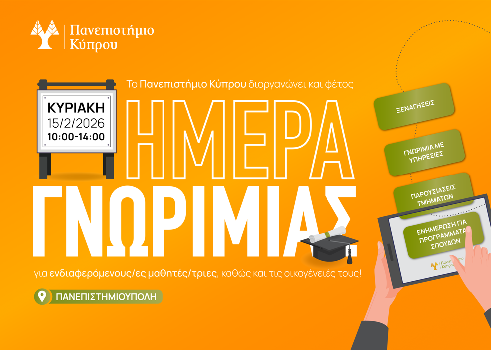 Περισσότερες πληροφορίες μπορείτε να βρείτε στην ιστοσελίδα της εκδήλωσης www.ucy.ac.cy/openday, ενώ για την καλύτερη διοργάνωση της εκδήλωσης μπορείτε να δηλώσετε εδώ την πρόθεσή σας να συμμετάσχετε στην εκδήλωση.